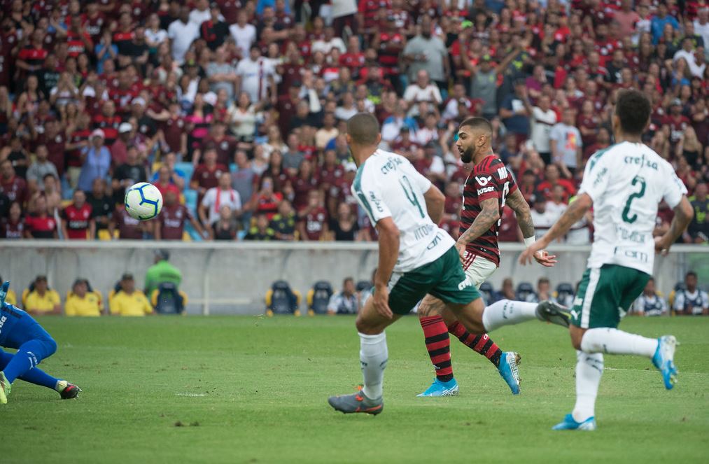 E assim o Mengão foi construindo o placar, logo aos 10 minutos, com Gabigol arrematando a rápida trama executada por Bruno Henrique e Arrascaeta.
