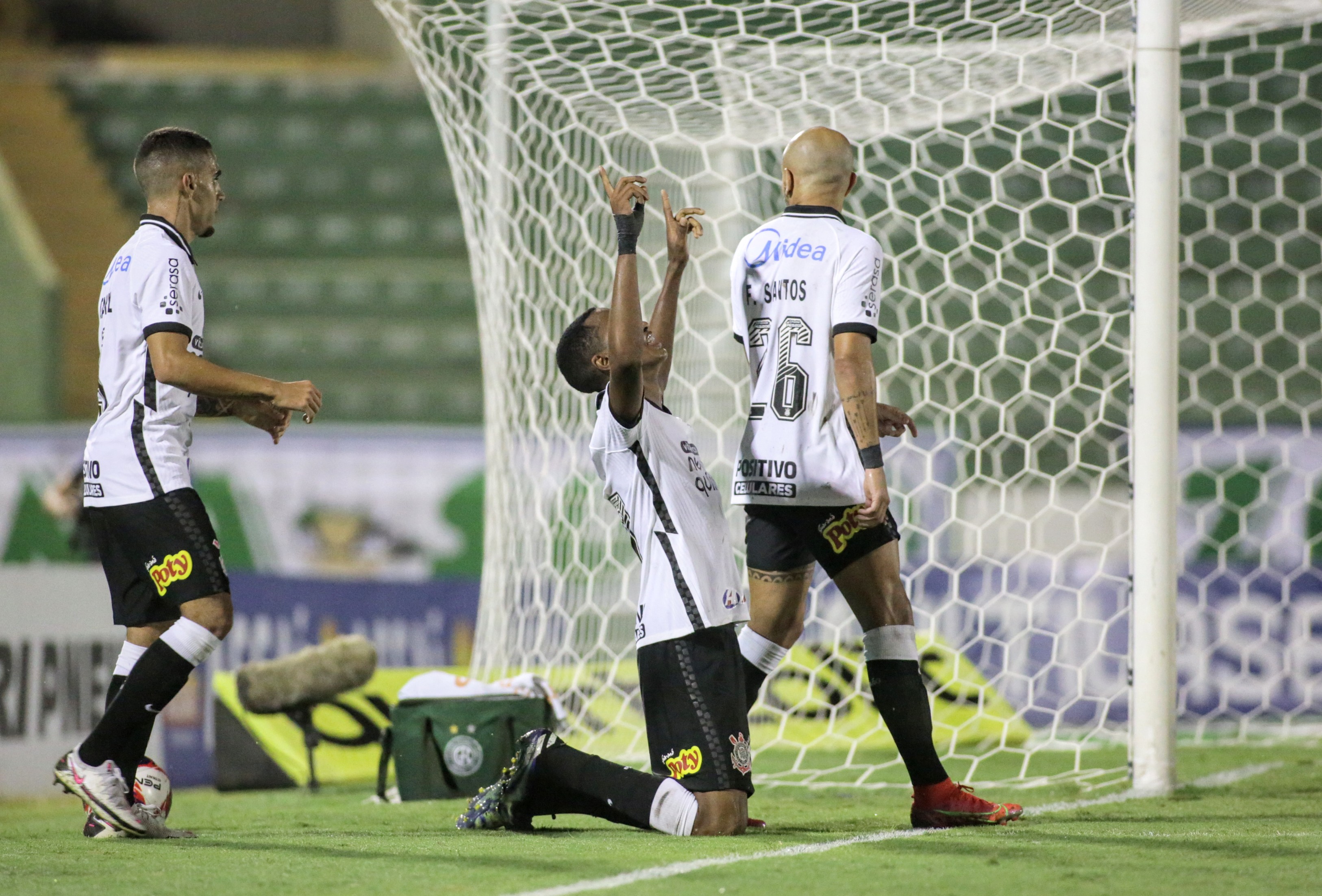 Quem não faz, toma. Léo Natel foi à linha de fundo e cruzou. A pelota pegou no travessão. No rebote, Cauê mergulhou de cabeça e abriu o placar, 1 a 0. O primeiro dele como profissional. Corinthians, então, passou a controlar a partida, com as entradas de Cantillo e Camacho. Fim de jogo e mais três pontos na sacola da Fiel.