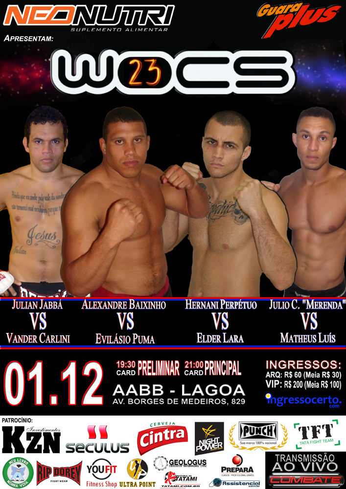 A 23ª edição do WOCS tem card super especial para finalizar o ano de um dos maiores eventos de MMA do Brasil.
