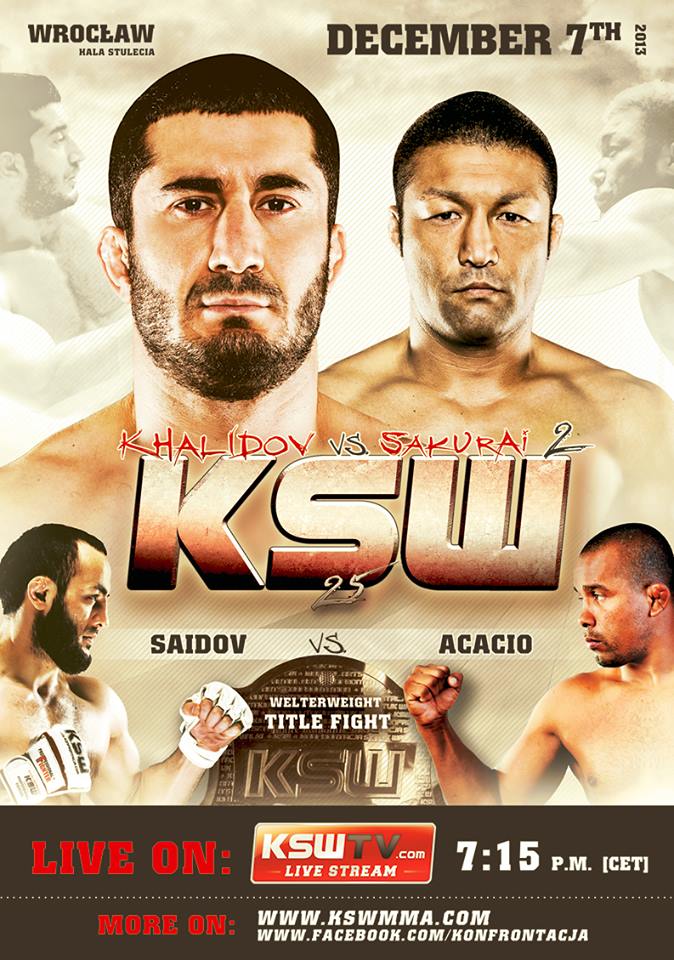 O KSW terá além do combate de Khalidov e Sakurai, dois brasileiros: Luiz Cado enfrenta a promessa Rafal Moks e Daniel Acácio disputa o cinturão até 77 kg contra Aslanbek Saidov.