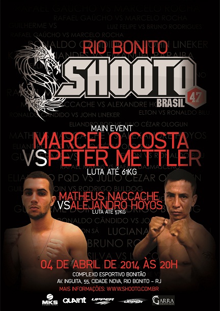 A cidade de Rio Bonito, na região metropolitana do Rio de Janeiro, recebeu, na noite desta sexta-feira, dia 4 de abril, o Shooto Brasil 47, e o show foi protagonizado por uma família. Na primeira edição do evento no município, destaque para os irmãos Guilherme e Rafael Viana, que voltaram para casa com duas vitórias marcantes por finalização no primeiro round, sobre Christiano Monteiro, na luta principal, e Carlos Batista, respectivamente. Na co-luta principal, o experiente Lincon Sá derrotou o promissor Maycon Boca na decisão unânime dos juízes.