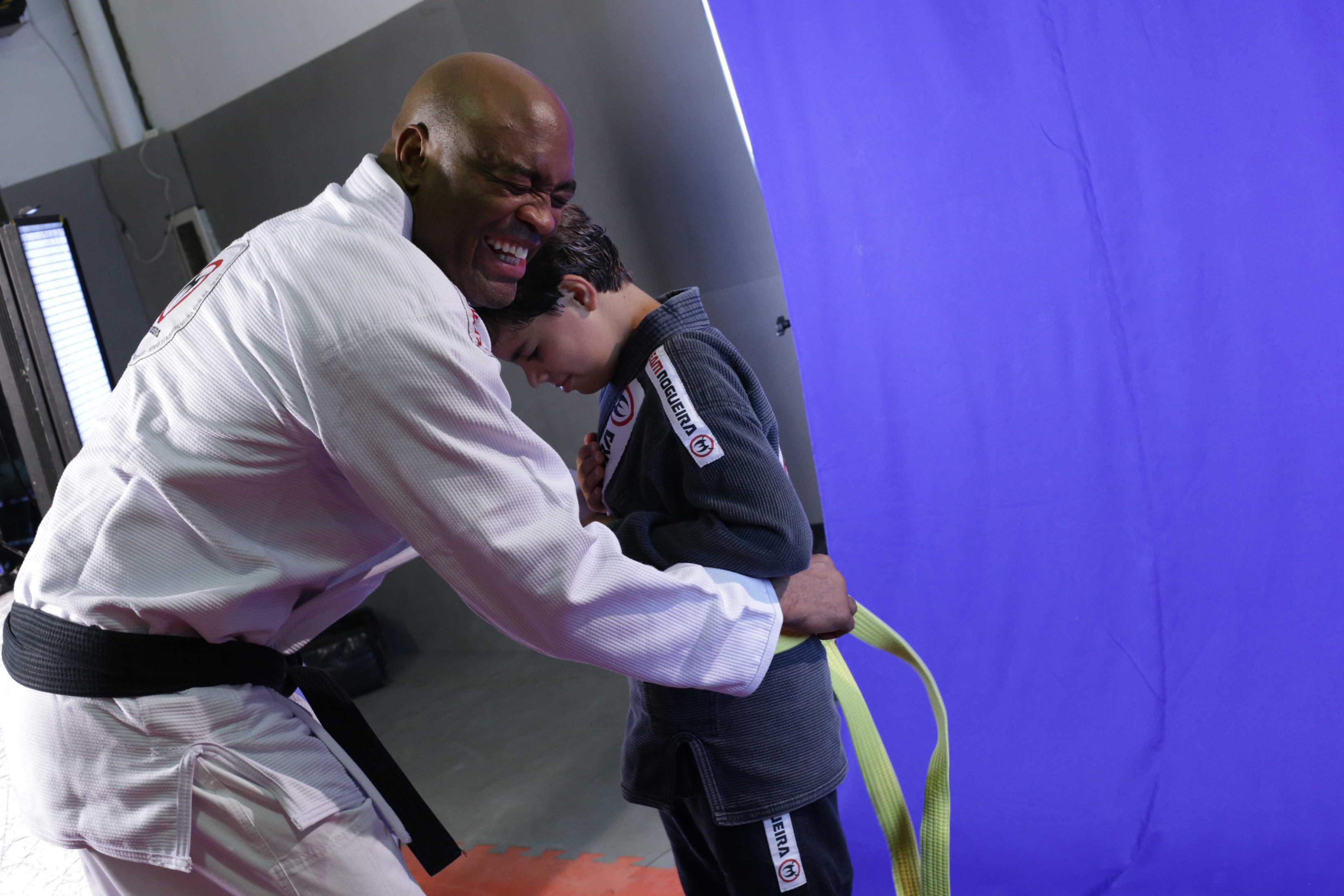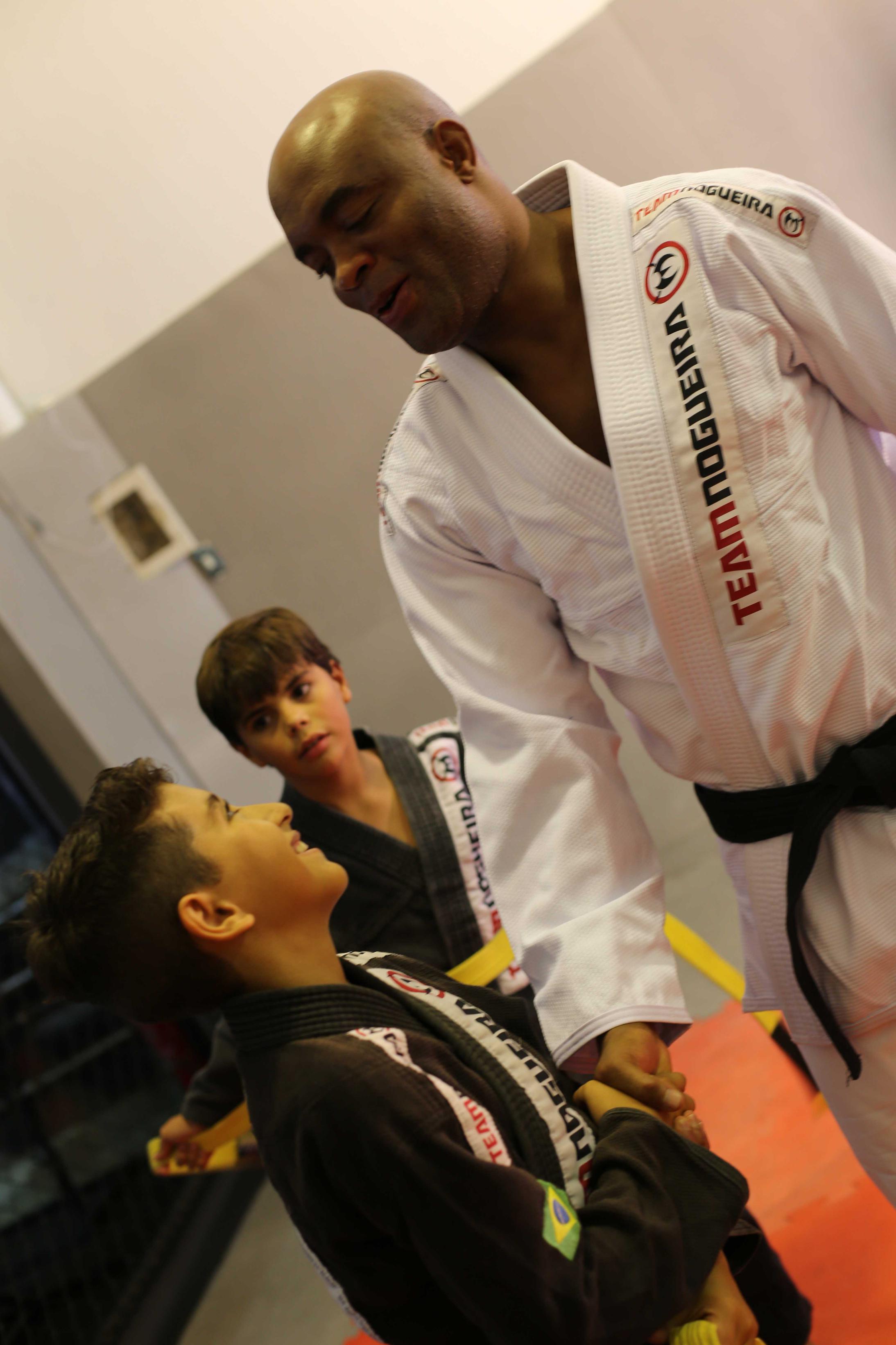 Amigo de longa data dos irmãos Nogueira, o lutador Anderson Silva reservou um tempo em sua corrida agenda e participou, no último fim de semana, de uma sessão de fotos para uma campanha que será veiculada na rede de academias Team Nogueira. Apesar dos diversos compromissos profissionais, o Spider esbanjou simpatia e se divertiu ao lado de Rogério Minotouro e das crianças escolhidas para participar do ensaio.