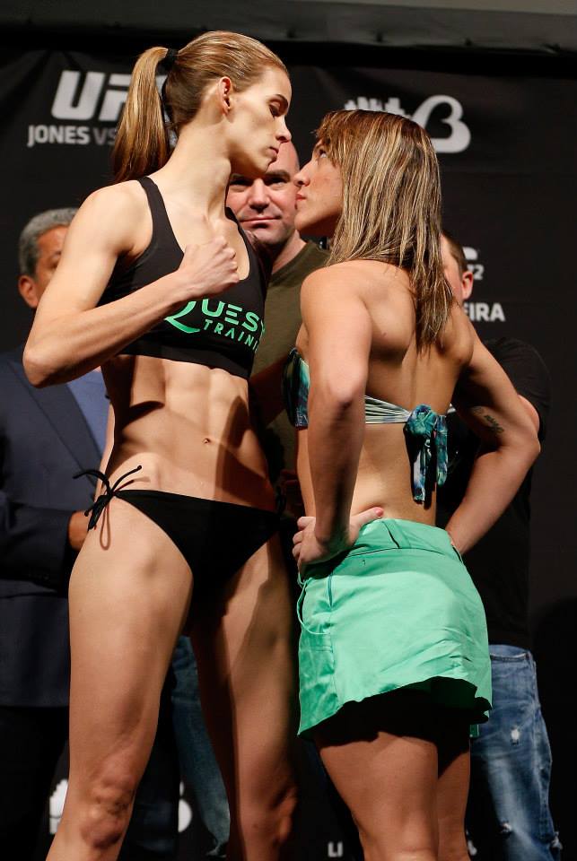 Protagonizando uma encarada tensa, Bethe enfrenta a americana participante do TUF 18, Jessamyn Duke.