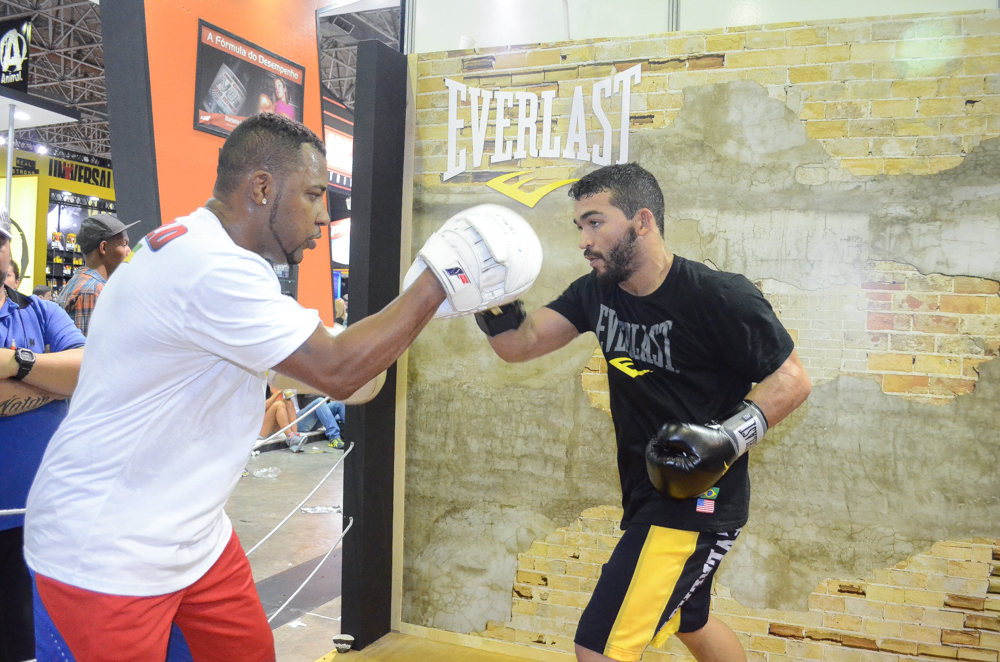 Um dos maiores nomes dos pesos-penas (66kg) no MMA mundial, Patricio Pitbull segue firme na preparação visando sua próxima luta contra Pat Curran, agendada para o dia 6 de junho, em Oklahoma (EUA). O duelo, que vale o cinturão da divisão, será a maior atração da edição 121 do Bellator. Feliz com a oportunidade de, enfim, disputar o cobiçado cinturão da organização, Patricio cumpriu alguns compromissos profissionais na Arnold Classic, feira realizada neste fim de semana no Rio de Janeiro (RJ). Dono de um impressionante cartel de 21 vitórias e apenas duas derrotas, o potiguar atraiu a atenção de um grande público durante sua passagem no estande da Everlast, uma de suas patrocinadoras.