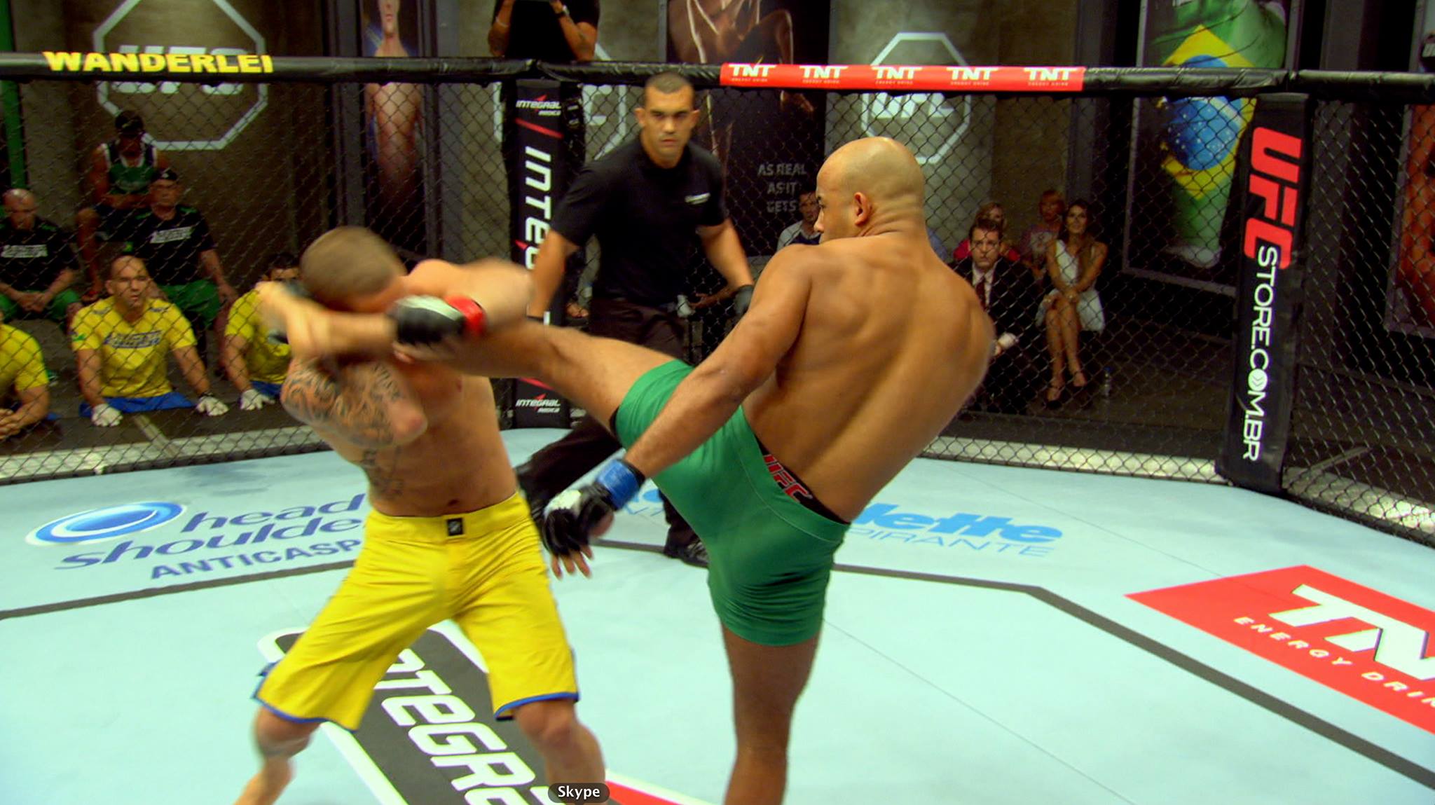 O Time Amarelo investiu em um treino pesado de muay-thai com quedas, sob a supervisão do líder Wanderlei Silva.