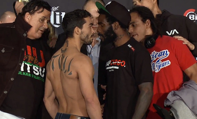 Patrício Pitbull faz encarada tensa com Straus no Bellator – O atual campeão peso pena do evento americano Bellator, Patrício “Pitbull” Freire conseguiu superar a balança sem problemas na pesagem nesta sexta feira.