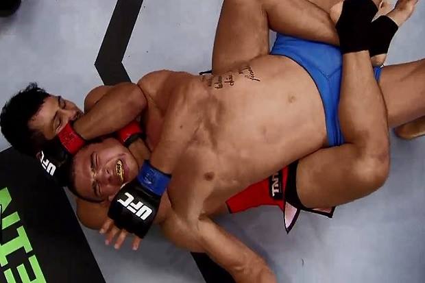 Melhor em pé, Bruno “Korea” Rodrigues usava seu jogo de Taekwondo para dominar em pé mas grande parte do combate aconteceu no solo.