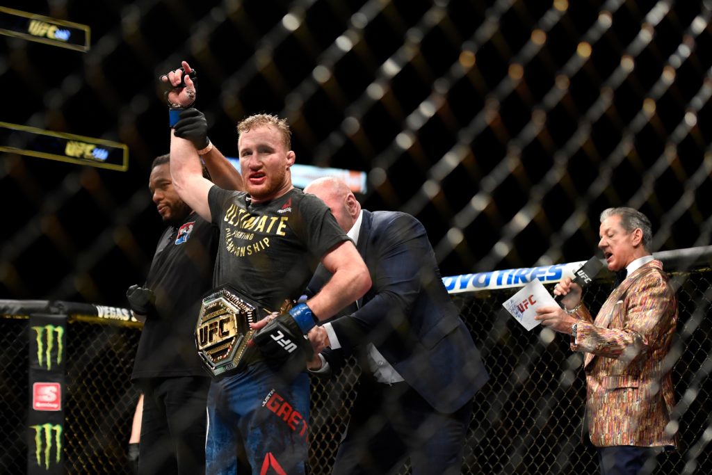 Na luta principal, os americanos Justin Gaethje e Tony Ferguson disputaram o título interino do peso leve além da chance de enfrentar o campeão linear do peso, o russo Khabib Nurmagomedov.
